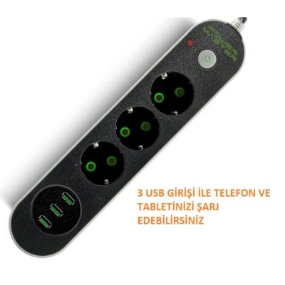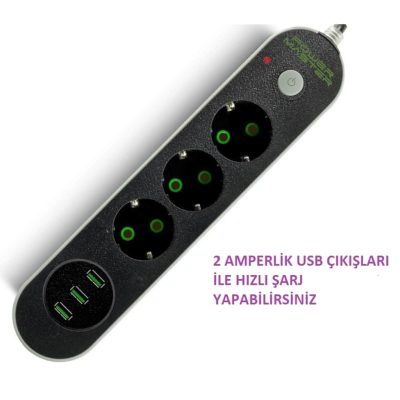 - 1 Adet Powermaster 3 usb çıkışlı aşırı yük korumalı priz